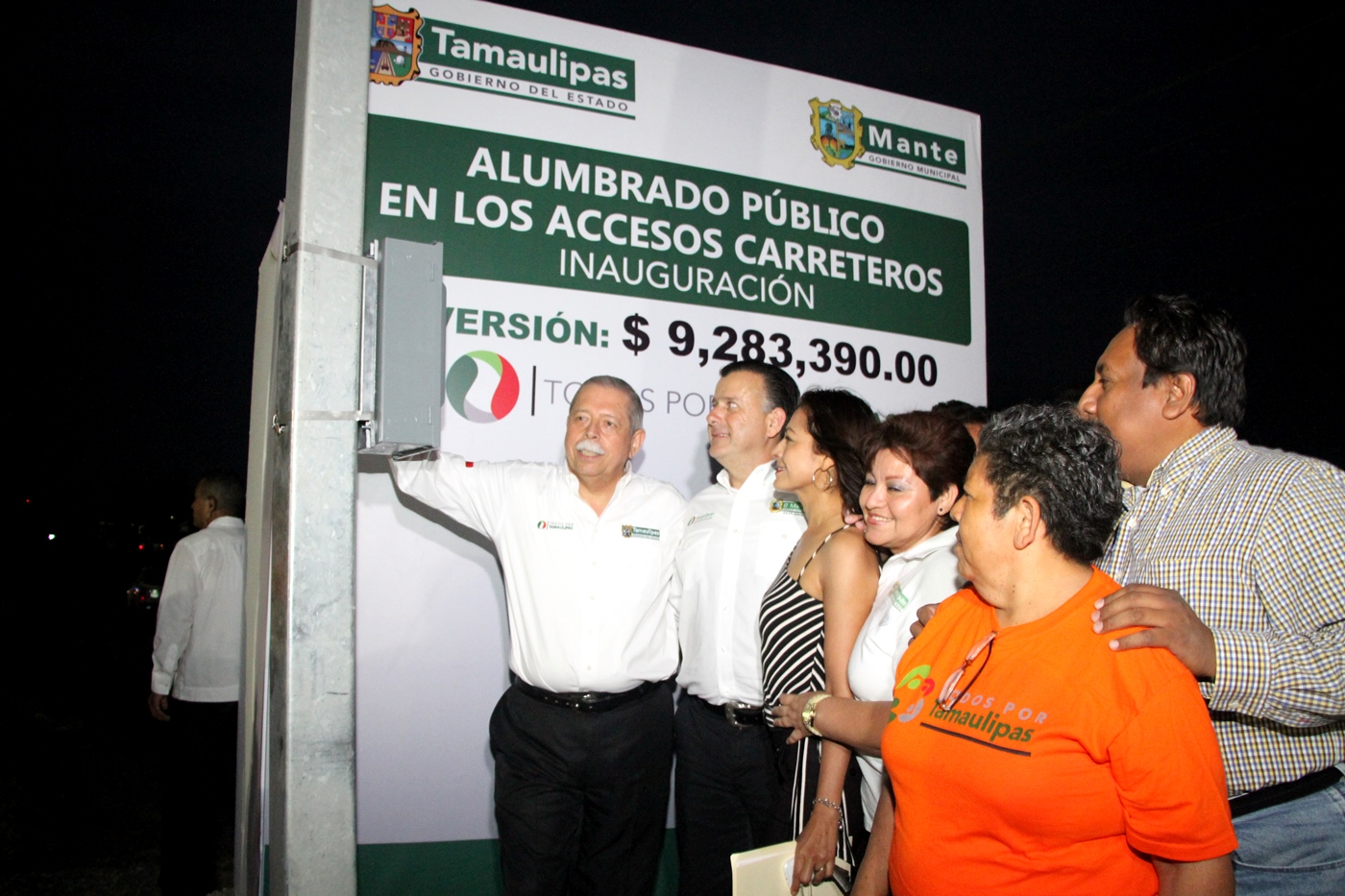 Finalmente, en la salida Mante-Victoria, la autoridad estatal y municipal inauguró la obra de alumbrado público en los principales accesos a la Ciudad, en donde se aplicó una inversión superior a los 9 millones de pesos.