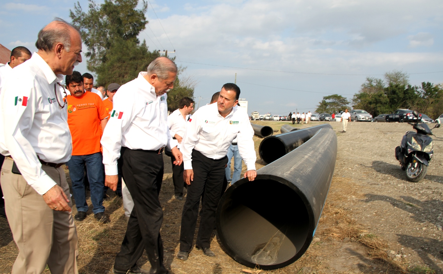 Acto seguido, cerca de las instalaciones del Tec Mante, el Gobernador del estado Egidio Torre Cantú junto a autoridades municipales dio inicio a los trabajos de construcción de la primera etapa del Acueducto El Nacimiento-Mante, en donde se aplica una inversión inicial de 20 millones de pesos de un costo total de 166 millones 146 mil pesos, infraestructura que por sus dimensiones garantiza entregar a esta Ciudad agua de primera calidad, en beneficio de más de 96 mil habitantes de esta localidad cañera.