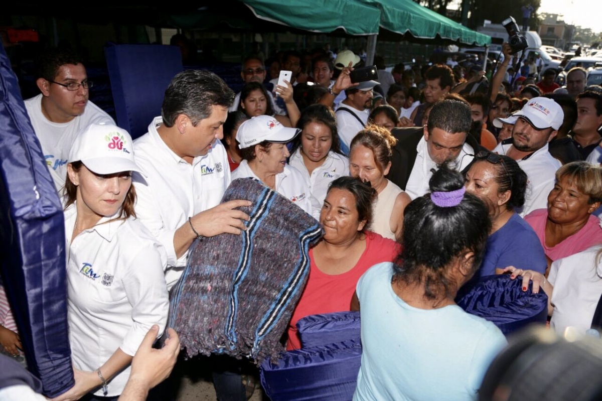 El Sistema DIF Tamaulipas logró el acopio en menos de 24 horas de más de 2 mil 500 botellas de agua, 70 cajas de pañales, 800 latas de atún, 500 kilos de arroz, 500 kilos de frijol y 550 litros de aceite comestible que serán distribuidas desde este lunes en la zona, junto con los que sea recaudado en las oficinas de los 43 DIF municipales de la entidad.
